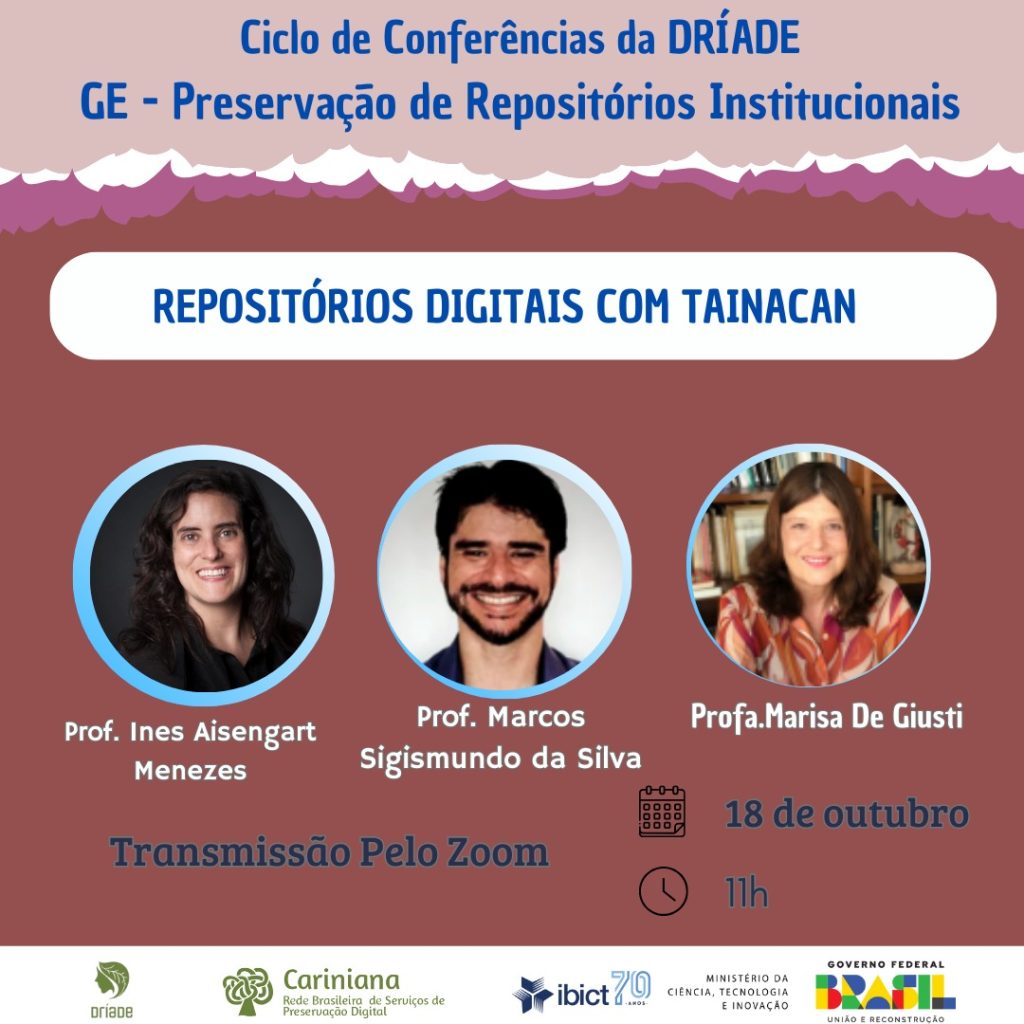 La actividad, que se transmitirá por Zoom, se realizará en el marco del Ciclo de Conferencias de DRÍADE GE sobre Preservación de Repositorios Institucionales, organizado por DRIADE, Cariniana Rede Brasileira de Serviços de Preservação Digital, e IBICT – Ministerio de Ciencia, Tecnología e Innovación – Gobierno Federal de Brasil.